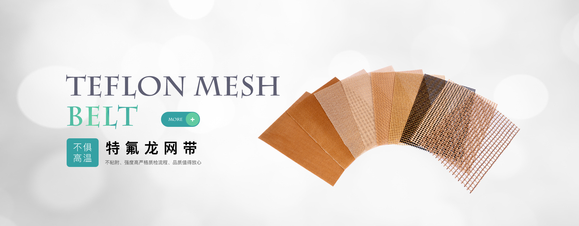 鐵氟龍網帶又名特氟龍網帶、鐵氟龍輸送帶、鐵富龍輸送帶、PTFE輸送帶和高溫輸送帶,特氟龍輸送